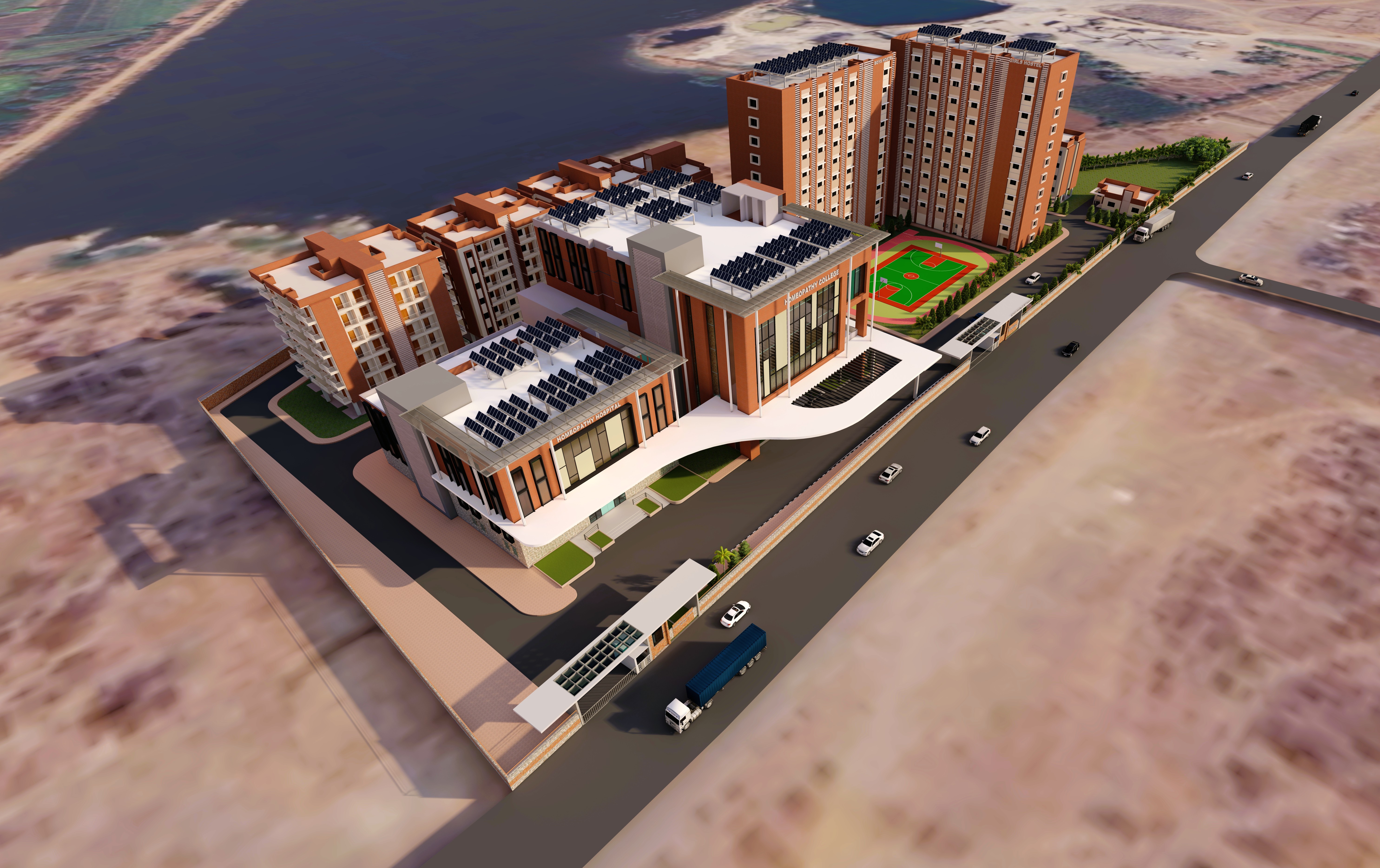 100-bed homeopathy college and hospital with hostel facilities.